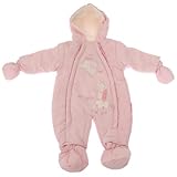 #2: Baby Elephant & Giraffe Design All In One Hooded Snowsuit -Boy/Girl Options (3-6 Months) (Pink)