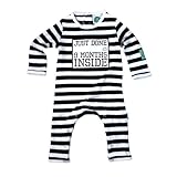 #1: JUST DONE 9 MONTHS INSIDE FAIRTRADE ORGANIC BABY GROW (0-6 MONTHS, BLACK/WHITE STRIPE)