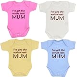 #4: 1 'One' I've got the world's best Mum' Baby Bodysuit / Vest Newborn -12 months in 4 Colours (CANDY PINK, 0-3)