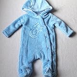 #3: Baby Boys Cute Clothes - 0-3 months - Gorgeous LITTLE BEARS STAR and MOON Blue Soft Fleece Hooded Sleepsuit Babygrow