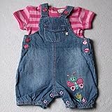 #3: Baby Girls Pretty Clothes - Gorgeous Blue Denim BUTTERFLY Short-legged Dungarees and Pink Striped Short-sleeved Body-vest Outift Set - 3-6 months