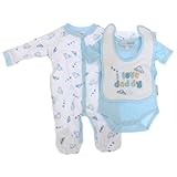 #3: Baby I Love Daddy 3 Piece Sleepsuit, Bodysuit & Bib -Boy/Girl Options (3-6 Months) (Blue)