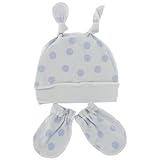 #5: Baby Spotted Design 2 Piece Hat And Mittens Gift Set - Boy & Girl Options (0-3 Months) (Blue)