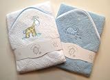 #7: A Set of Two Beautiful Baby Bath Towels - 100% Cotton In Pink or Blue with Cute Animal Appliques (Blue)