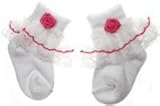 #8: Baby Girls Cute CERISE PINK ROSE Frilly Socks in White (0-3 Months)