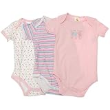 #2: Baby Patterned Short Sleeve Sleepsuits, Boy & Girl Options (Pack Of 3) (0-3 Months) (Pink)