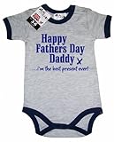 #7: Dirty Fingers - Happy Fathers Day Daddy x....I'm the best present ever! - Baby & Toddler, Short Sleeve Bodysuit, 6-12 months, Grey with Navy Trim