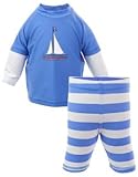 #4: Australian Sun Protection UPF50+ Boys Sunsuit Striped 2 Piece Set size up to 3 years - Blue Stripe by Plum Collections