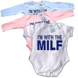 #7: IM WITH THE MILF BABYGROW ( 0-3 Months SHORT SLEEVE - White ) New Baby Grow Boy Clothing Girl Play Suit Romper Cute Vest Funny Slogan Toddler Mum Dad Costume Joke t Shirt Gift bib Present tshirt Sleep Suit Top - by Fonfella