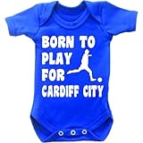 #2: Born To Play Football For Cardiff City Short Sleeved Baby Bodysuit Romper Vest Grow In Royal Blue & White Motif