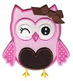 #8: Pink and Brown Owl Iron On Applique Patch Kids Baby